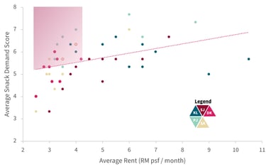 Success in early-stage food retail is determined by unit economics, not marketing exposure. We analyzed demand and rental data across Klang Valley and identified neighborhoods where high snack consumption intersects with affordable rents. These include student zones in Subang Jaya and Shah Alam, and mixed-use commercial areas in Petaling Jaya and Klang.